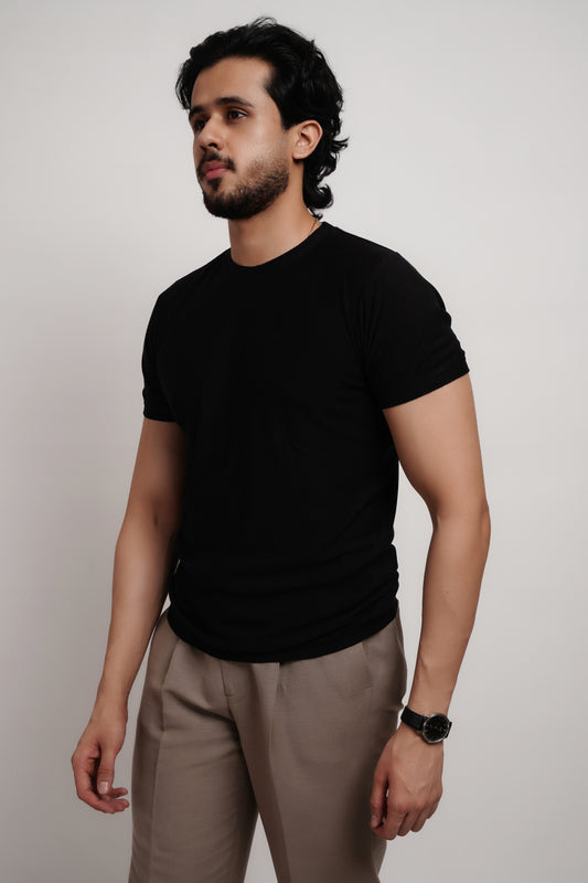 Bamboo Pique Crewneck Black T-Shirt