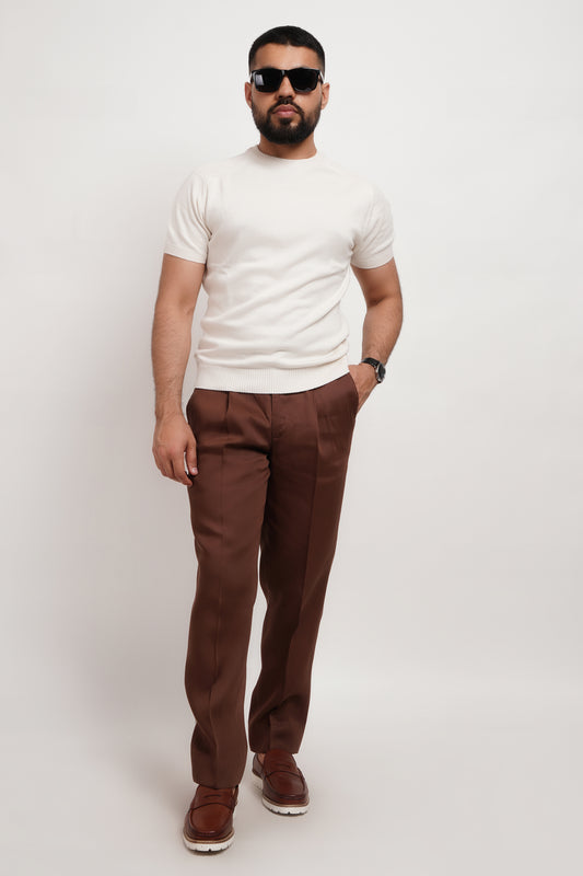 Ivory Bamboo Cotton Crewneck Knitted T-shirt