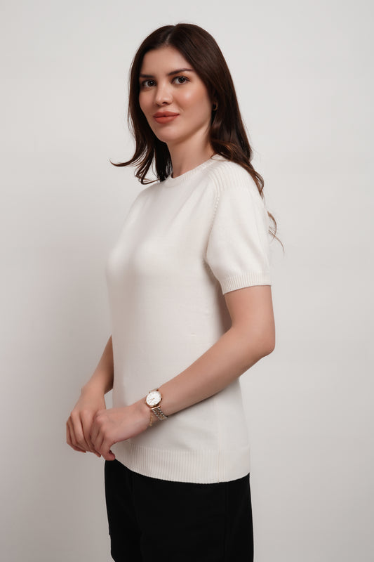 Ivory Bamboo Cotton Crewneck Knitted T-shirt