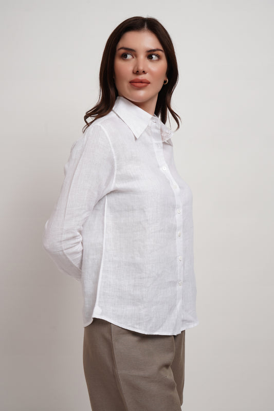 Blue Striped Linen Blend Double Gauze Panelled Shirt