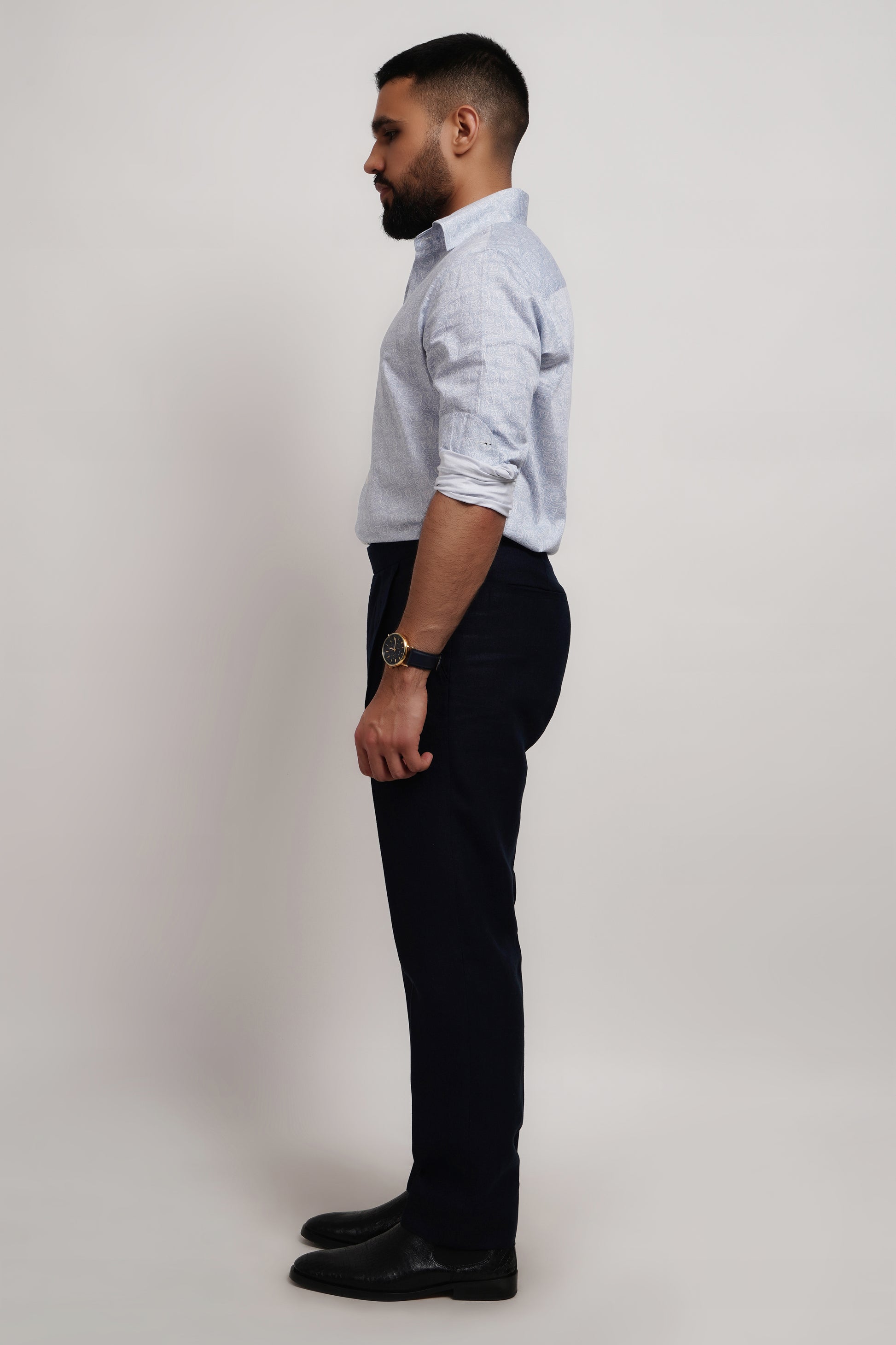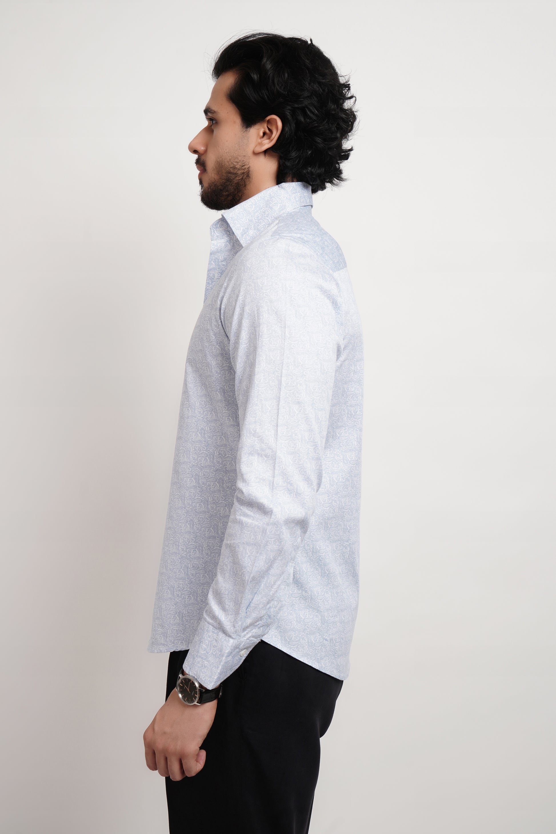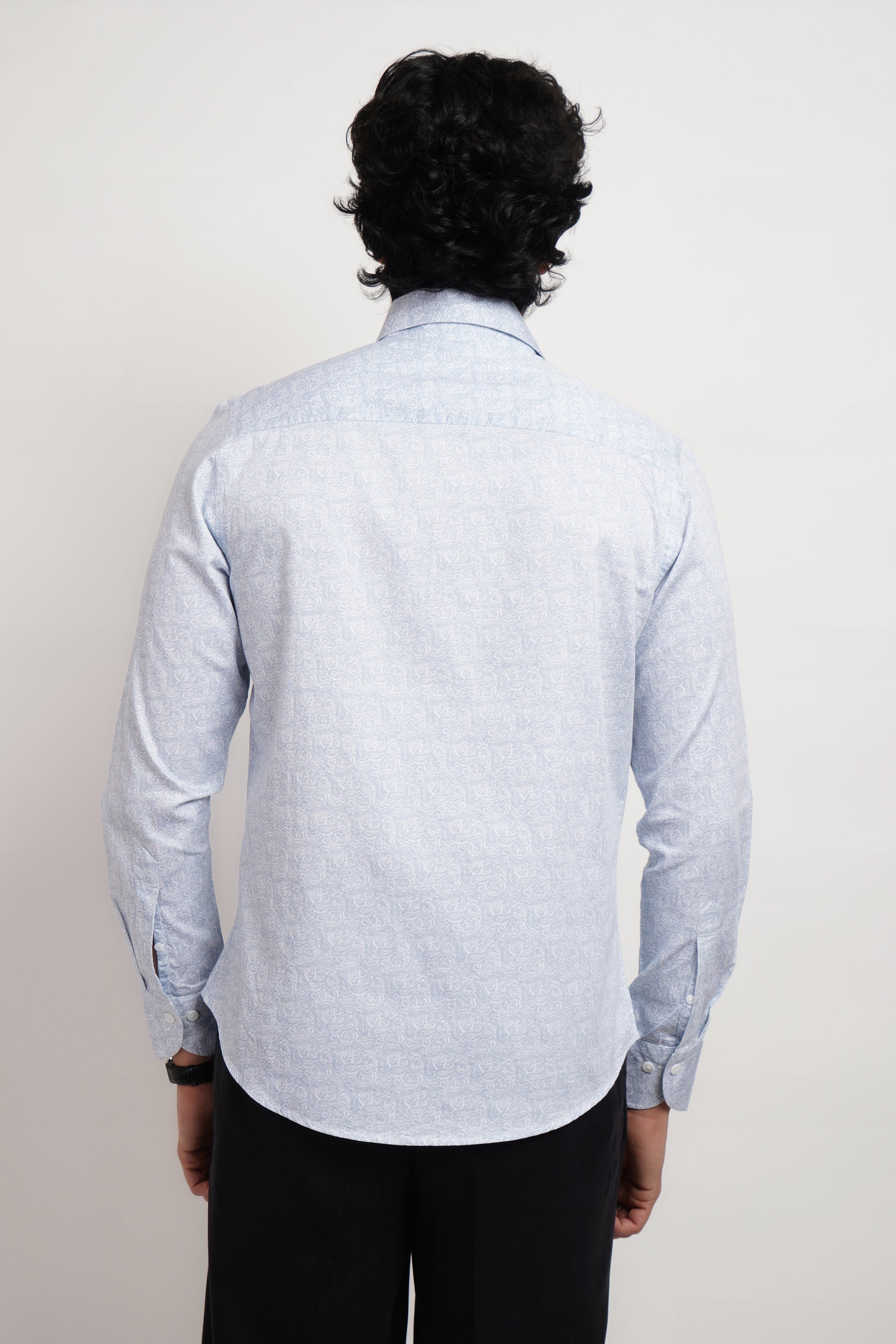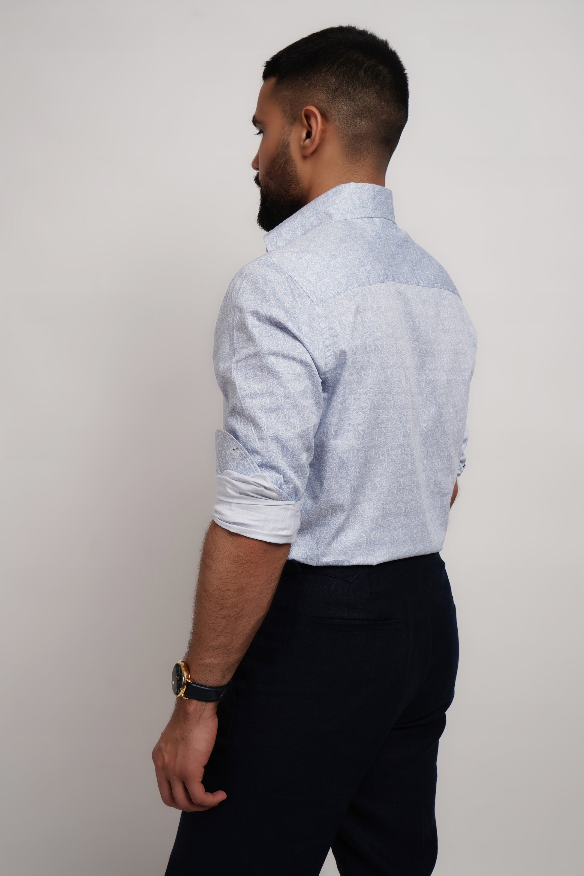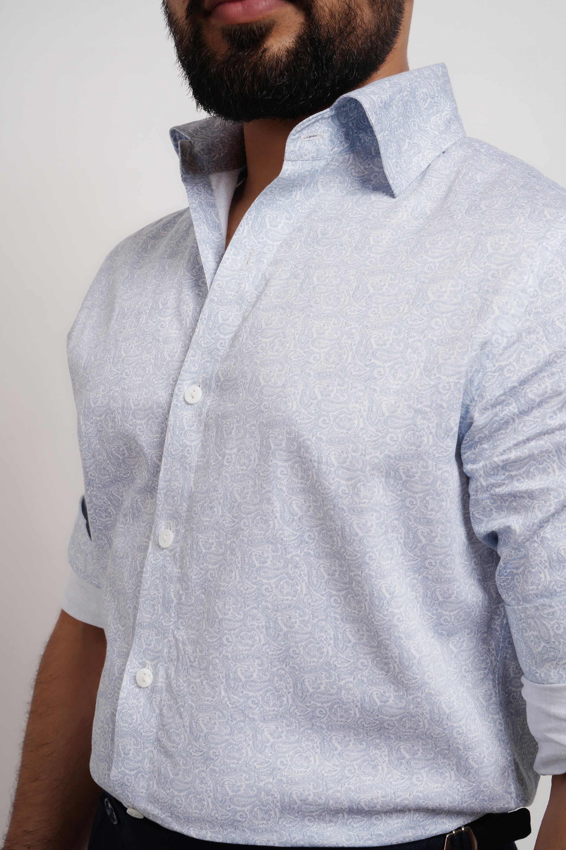 The intricate paisley print in shades of blue adds a bold yet elegant flair, making it perfect for both casual and semi-formal occasions.
